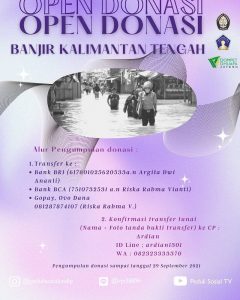 Banyak warga yang terdampak banjir kesulitan dalam beraktivitas karena akses transportasi tidak bisa dilalui. Untuk itu, UKM Peduli Sosial membuka donasi untuk membantu saudara-saudara kita yang terdampak banjir yang nantinya akan digunakan untuk memenuhi kebutuhan dasar ataupun perbaikan fasilitas umum.