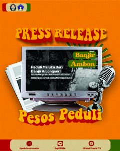 Telah dilaksanakan penggalangan dana pada kegiatan Pesos Peduli untuk membantu saudara-saudari kita yang terkena dampak bencana Banjir Ambon pada 8 Juli 2022.