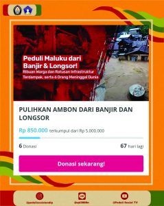 Open donasi dibuka sejak tanggal 10 Juli sampai 24 Juli 2022, untuk memfasilitasi rekan-rekan yang ingin mengulurkan tangan dalam membantu sesama. Donasi tersebut terkumpul sebanyak Rp 850.000 . Hasil dari penggalangan dana ini disalurkan melalui Kita Bisa, kemudian disalurkan kepada saudara-saudara yang terdampak banjir di Ambon.